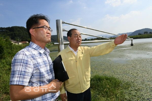 황선봉 예산군수가 2일 예산정수장 취수원을 방문해 현장 점검 모습