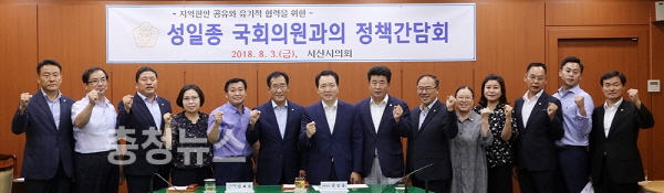 간담회는 임재관 의장을 포함한 13명의 시의원과 성일종 국회의원이 함께한 가운데 서산시 발전을 위한 현안사항 건의 및 토의의 시간을 갖기 위해 마련됐다.