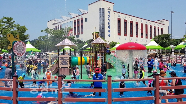 충남 서산시가 여름철 가족단위 휴식 공간 제공을 위해 서산종합운동장에서 운영 중인 무료 야외물놀이장이 인기를 끌고 있다.