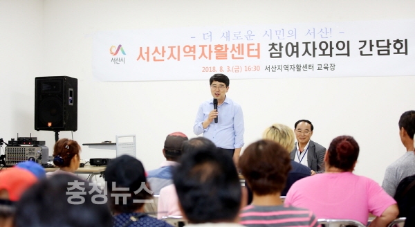 맹정호 서산시장이 지난 3일 서산지역자활센터를 방문해 수급자·차상위계층 등 취업 취약 계층인 자활근로참여자와의 소통의 시간을 가졌다.
