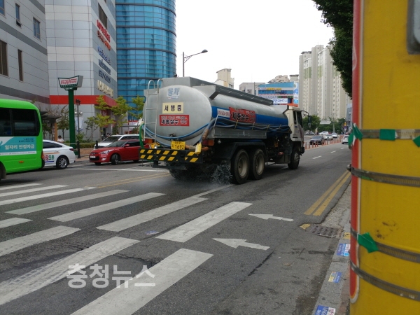시는 도시열섬현상을 저감하기 위해 긴급 살수차량 6대를 투입해 거주밀집 지역을 중심으로 일조량이 가장 많은 시간대인 12시부터 오후4시까지 살수작업을 진행하고 아산소방서의 협조를 받아 골목길 살수작업을 벌이고 있다.
