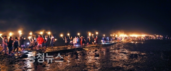 무창포 신비의 바닷길 야간 횃불어업 재현 모습