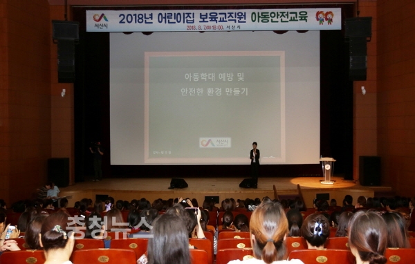 충남 서산시는 7일 서산문화회관에서 관내 149개소 어린이집 원장, 보육교사, 운전기사 등 700명을 대상으로 어린이집 안전사고 및 아동학대 예방교육을 실시했다고 밝혔다.