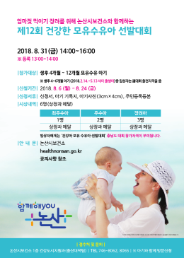 이번 행사는 모유의 우수성 홍보와 모유수유 실천 확산을 위한 취지로, 참가 자격은 논산시에 거주하는 4개월~12개월 사이의 모유 수유아다.