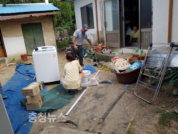 충남 금산군 금산읍(읍장 박영하) 맞춤형복지팀의 주거환경개선사업이 폭염 속에서도 금산읍 장동이 마을 대상가구에서 진행됐다.