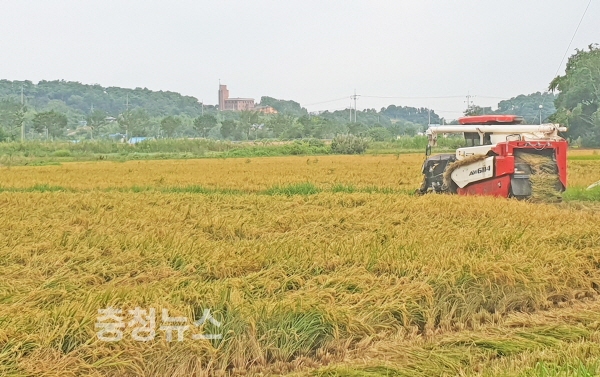 최고의 맛을 자랑하는 해나루쌀로 유명한 충남 당진에서 9일 기록적인 폭염을 이겨내고 자란 벼의 첫 수확이 이뤄졌다.