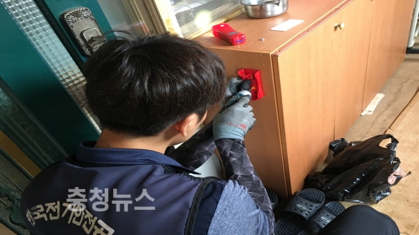 올해는 대상 세대를 확정한 후 지원비 2,000만 원을 투입하고 지난 2월 협약을 체결한 한국전기안전공사 충남서부지사와 함께 각 세대를 방문해 전기 분야 안전점검을 실시하고 정비가 시급한 156세대를 대상으로 차단기, 조명, 배선기구 등 노후 되고 위험한 설비를 무상 교체했다.