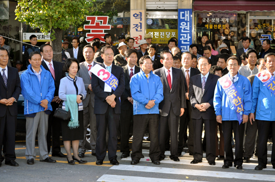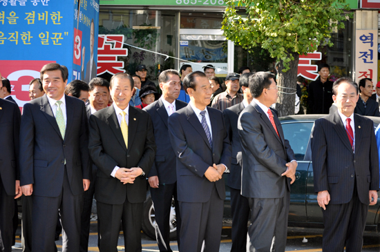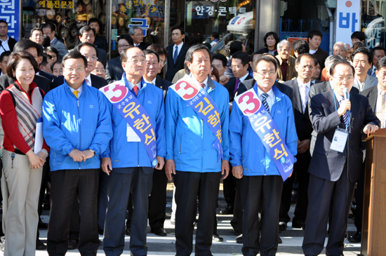충남 연기군수 보궐 선거를 3일 앞두고 선진당 이회창 총재를 비롯한 심대평 대표와 당지도가 출동해 유한식 연기군수 후보 지원유세를 펼쳤다.