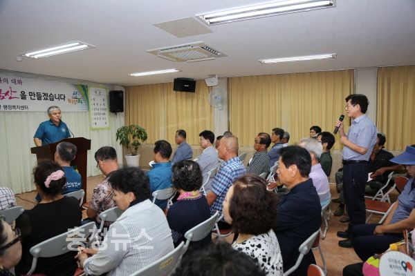 주민과의 토론시간에는 민원성 질의 및 변화와 개선을 요구하는 목소리들이 제기되었고, 문 군수는 차분한 대안제시로 공감의 폭을 넓혔다.