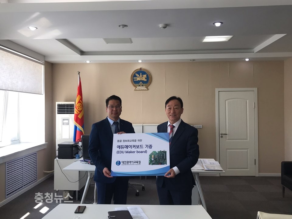 대전시교육청(교육감 설동호)은 13일 몽골 교육문화과학스포츠부(이하 교육부)를 방문해 교류협력 증진 방안을 협의하고, SW교육 표준형 보드인 ‘에듀 메이커보드’를 기증했다.