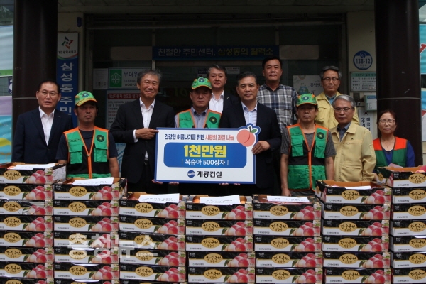 계룡건설 한승구 회장은 13일 오후 3시, 삼성동 주민센터에서 박영순 대전시 정무부시장을 만나 폭염에 지친 소외계층을 위한 천만원 상당의 복숭아 500상자를 전달했다.