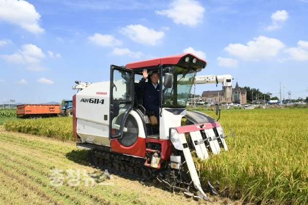 이날 황선봉 군수도 벼 수확현장을 방문해 농가를 격려하고, 콤바인을 직접 몰며 일손을 돕는 등 풍성한 수확의 기쁨을 함께 나눴다.