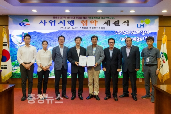 충남 청양군과 한국토지주택공사 대전충남지역본부(이하 LH)가 공공임대주택 180호 건립 등을 주요 내용으로 하는 ‘마을정비형 공공주택사업 시행협약’을 체결하고 사업추진에 들어간다고 지난 14일 밝혔다.