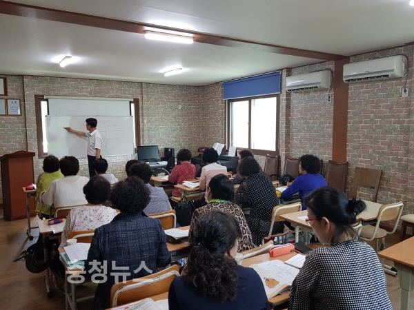 그 중 홍북읍 내덕리 서력마을에 있는 내포성인학교(교장 최광묵)에서는 매주 수, 목, 금요일 오후 2시부터 6시까지 평균나이 64세의 성인 학습자 21명이 지난 3월 2일 중학학력인정과정 입학식을 시작으로 5개월간 국어, 수학, 영어, 사회, 과학 등 6과목 수업을 들으며 배움의 즐거움을 공유하고 있다.