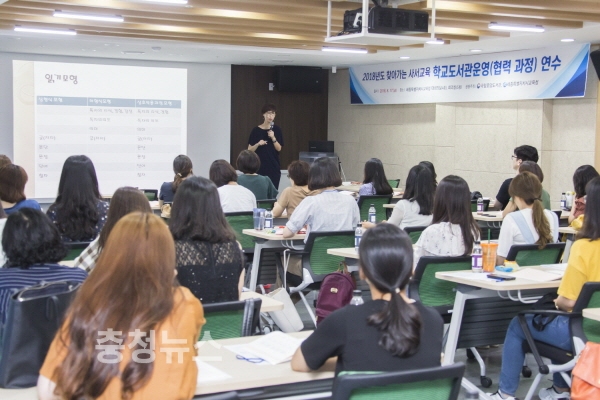세종특별자치시교육청(교육감 최교진)은 17일 교육청 4층 대회의실에서 학교도서관 운영 전문성 신장을 위해 관내 학교도서관 업무 담당자 50여 명을 대상으로 「학교도서관운영 역량강화 연수」를 실시했다.