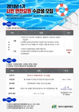 충남 천안시와 천안·아산 동반성장 공동체경제 생태계 구축사업 수탁 기관인 충남창조경제혁신센터는 오는 23일까지 수상안전요원 양성과정수강생을 모집한다고 17일 밝혔다.