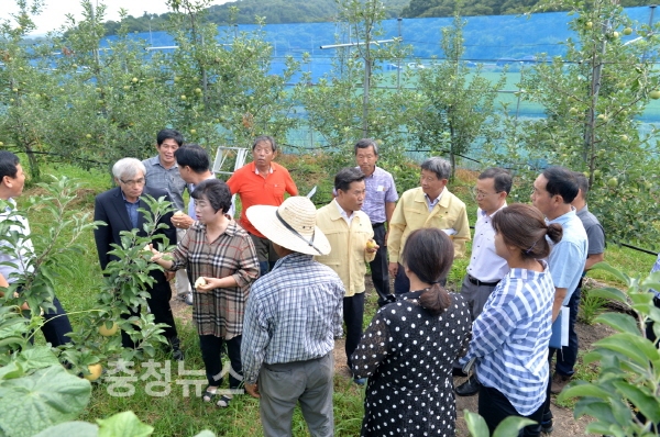 먼저 박 군수와 부여군의원들은 가뭄으로 인해 수분 공급이 줄어 과실 표면 온도가 높아져 나타나는 일소과(日燒果, 햇볕데임) 피해를 입은 내산면 사과농가를 방문해 농민의 이야기를 들었다.