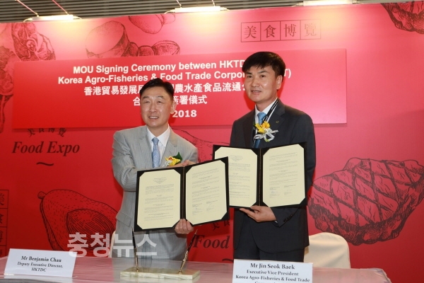 한국농수산식품유통공사(aT, 사장 이병호)는 지난 16일 홍콩무역발전국(HKTDC, Hong Kong Trade Development Council)과 한국식품 시장확대 협력 및 상호 관계 증진을 위한 MOU를 체결했다.