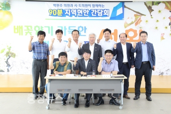 박완주의원과 시·도의원은 지역별 현안사업의 진행상황을 공유하고 건의사업을 청취함과 동시에 향후 지역 발전 방향에 대해 논의했다.