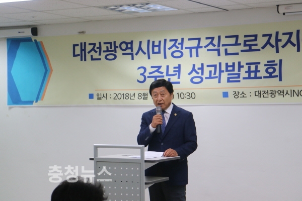 윤용대 대전시의원, 대전시비정규직근로자지원센터 3주년 성과발표회 모습