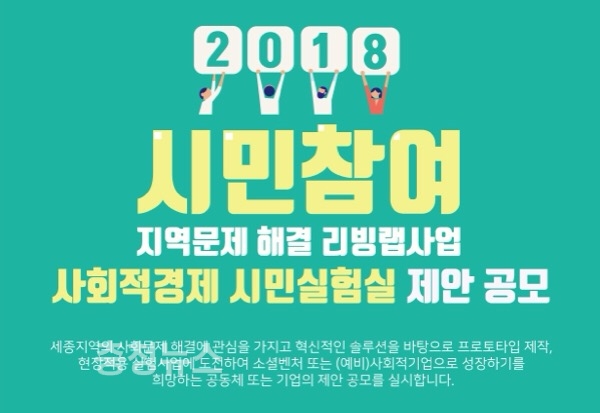 20일 세종혁신센터는 사회적경제 시민실험실 제안 공모를 시작한다고 밝혔다.
