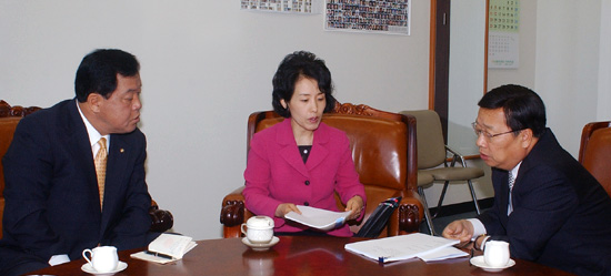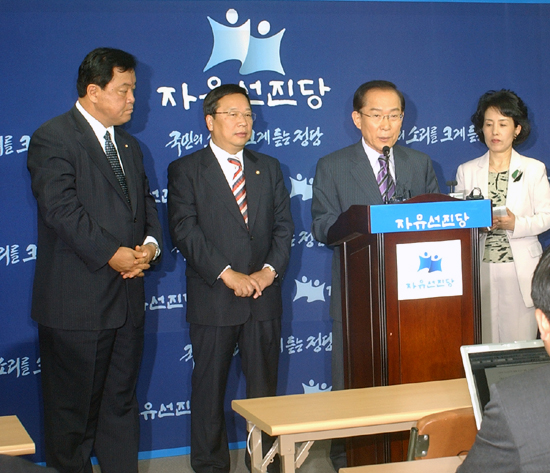 ▲ 선진당 권선택 원내대표 류근찬 정책의장,박선영 대변인