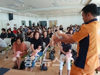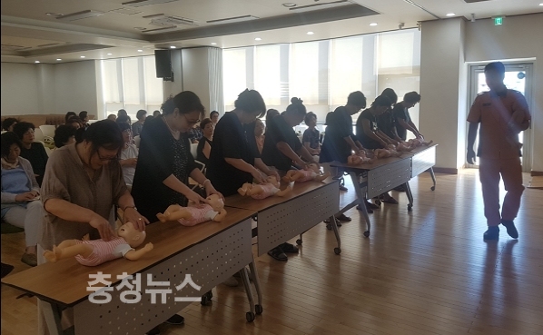 충남 홍성군보건소는 지난 18일 산모·신생아 건강관리사 60명을 대상으로 신생아와 영아의 질식 사고에 대한 대처방법인 기도폐쇄 시 응급 처치법과 심폐소생술 교육 및 실습을 진행했다.