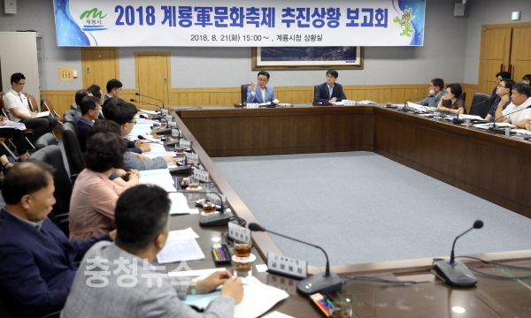 시는 21일 계룡시청 상황실에서 실・과・소장 및 주무팀장 등 30여명이 참석하여 ‘2018계룡軍문화축제 추진상황 보고회’를 개최하고 현재까지의 추진상황과 앞으로 추진방향을 점검했다.
