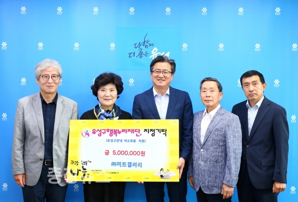 대전 유성구(구청장 정용래)는 21일 ㈜미트갤러리(대표 송정숙)가 유성구행복누리재단에 후원금 500만원을 기탁했다고 밝혔다.