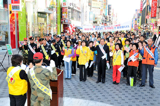 기념식 후에는 제152차 안전점검의 날 행사를 가짐으로써 으능정이거리를 찾은 주민들에게 화재사고 등 동절기에 발생할 수 있는 각종 재난과 사고에 대한 예방, 대처요령에 대한 홍보도 함께 실시하였다.