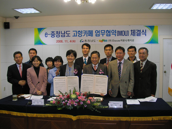 이에 따라 ㈜다음커뮤니케이션은 2012년까지 도내 모든 법정리 2천113곳을 대상으로 'e-충남 고향카페'를 구축하고 이 카페 운영을 위한 서버도 무상으로 제공하게 된다.이 카페에선 애경사 등 마을소식과 마을 농특산물 판매정보, 조류인플루엔자(AI) 방역요령 및 농사소식 등 각종 생활정보가 게재된다.