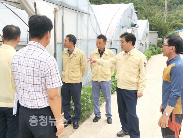 김 시장은 이날 면천면 소재 꽈리고추 하우스 단지와 순성면 사과 재배 농가, 신평면 남원포 일원 벼 침수 우려 지역 등 태풍으로 인해 피해발생이 우려되는 농업현장을 찾아 피해 대비 상황을 파악했다.