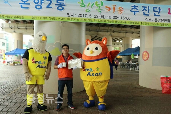 또, 2009년부터 온양2동 행복키움추진단장을 역임하면서 독거어르신 26분을 위해 매월 2회 반찬서비스를 지원하는 등 취약계층에 맞춤형 복지서비스를 연계하기 위해 다양한 복지자원을 발굴하는 등 열정적인 사회공헌활동을 꾸준히 실행하고 있다.