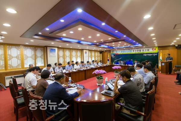 충남 청양군은 제3기 균형발전 사업을 성장 동력사업으로 내실 있게 추진하기 위한 부서별 추진상황 보고회를 24일 군청 상황실에서 김돈곤 청양군수를 비롯한 관련 부서장과 팀장, 담당자 등 30여명이 참석한 가운데 개최했다.