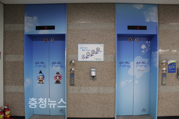 충남 아산시 홍보담당관(담당관 오세규)은 민선7기 출범에 따라 아산시청 본관 및 별관 엘리베이터 외부 디자인을 새롭게 바꿨다고 28일 밝혔다.