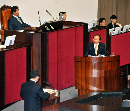 임의원은 특히 지역균형발전과 관련, 행복도시 이전 부처고시와 세종특별자치시 특별법안 제출을 아직도 안하고 있는 이유와 국제과학비지니스벨트 조성사업 추진의지를 따졌다.