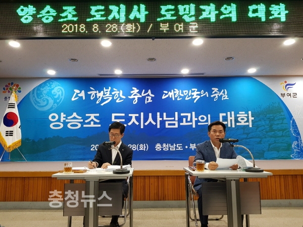 부여군 방문에서 양 지사는 △박정현 군수 등 기관장 환담 △의회 방문 △기자실 방문 △도민과의 대화 △현장 방문 등의 일정을 소화했다.