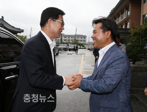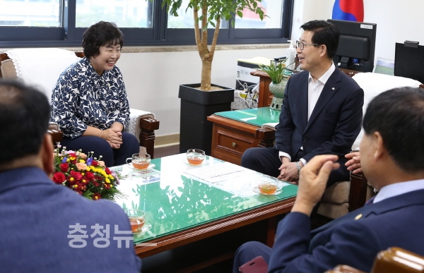 양승조 도지사가 부여군의회를 방문하고 송복섭 의장과 티타임을 가졌다.