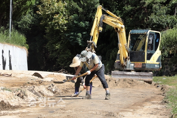 29일 유성구 안산동 도로에서 전일 쏟아진 폭우로 흘러내린 토사와 퇴적물을 구청 건설과 직원들이 살수차와 굴삭기를 이용해 정비하고 있다. 유성구가 29일 반석천 일대에서 전일 내린 폭우로 천변에 쌓인 토사를 치우고 있다. 저작권자 © 충청뉴스 무단전재 및 재배포 금지 김남숙 기자 다른기사 보기 기사가 마음에 드셨나요? 충청뉴스 좋은 기사 후원하기 1,000원 3,000원 5,000원 10,000원 30,000원 50,000원 직접입력 비회원 약관동의하기 ※ 소중한 후원금은 더 좋은 기사를 만드는데 쓰겠습니다.