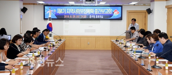대전 중구(구청장 박용갑)는 29일 청사 중회의실에서 지역사회보장계획 중간보고회를 개최했다.