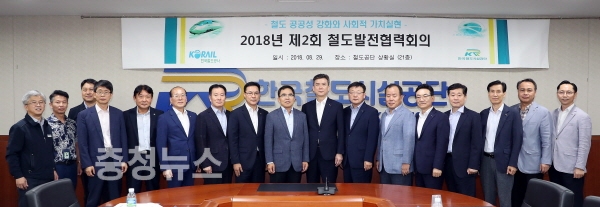철도발전협력회의 공동위원장 정인수 철도공사 부사장은 “언제나 국민의 삶과 함께 했던 양 기관의 사회적 가치와 역할은 미래에 더 커질 것”이라고 언급하며,
