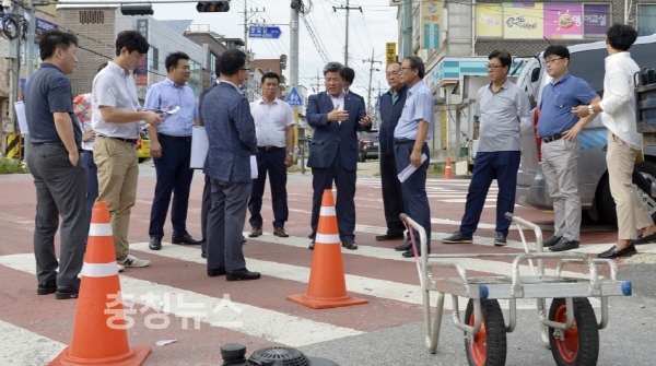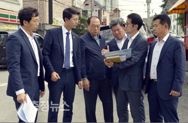 이태환 위원은 조치원 도시계획도로 현장에서“인도가 미설치된 도시계획도로에 대해서는 시민보행이 가능한 인도를 설치해 줄 것”을 요구했다.
