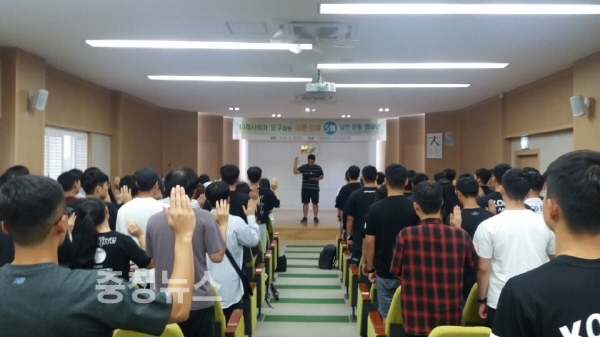 건양대학교(총장 이원묵) 군사경찰대학(학장 이세영)은 지난 30일 오후 논산 메디컬캠퍼스 충무홀에서 군사경찰대학 재학생과 교직원 등 300여명이 모인 가운데 無음주, 無흡연, 無시험부정, 無폭력, 無갑질을 다짐하는 ‘5無 실천운동’ 캠페인 발대식을 열었다.