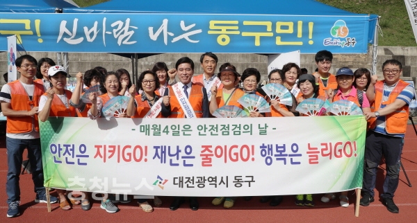 대전 동구(동구청장 황인호)는 2일 제270차 안전점검의 날을 맞아 대전대학교 종합운동장에서 열린 제11회 대전광역시 동구청장배 전국 풋살대회와 연계해 풍수해대비 안전사고 예방 및 풍수해보험 가입홍보 캠페인을 펼쳤다.