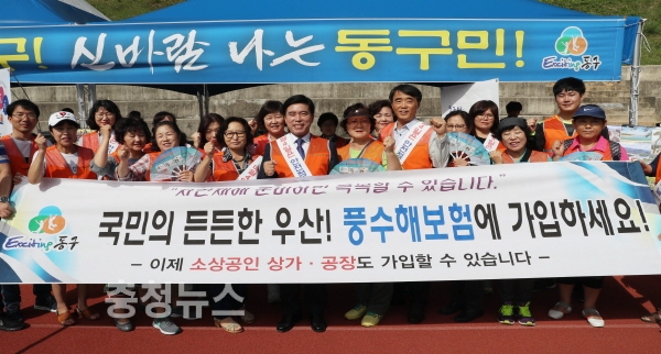 대전대학교 종합운동장에서 열린 제11회 대전광역시 동구청장배 전국 풋살대회와 연계해 풍수해대비 안전사고 예방 및 풍수해보험 가입홍보 캠페인 펼쳐