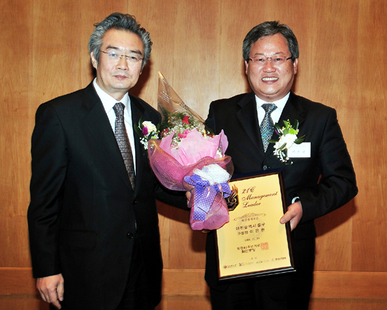‘제1회 대한민국을 이끄는 21세기 경영리더 대상’은 한국신문방송연구원이 주관하고 지식경제부, 외교통상부, 환경부, 한국 무역협회가 후원하는 상으로 정치, 경제, 사회 전 분야에 걸쳐서 탁월한 리더십을 발휘한 각 부문 최고경영자를 선정, 대전 중구청장, 서울시장 등 10개 부문 기관장들이 경영리더로 선정됐다.