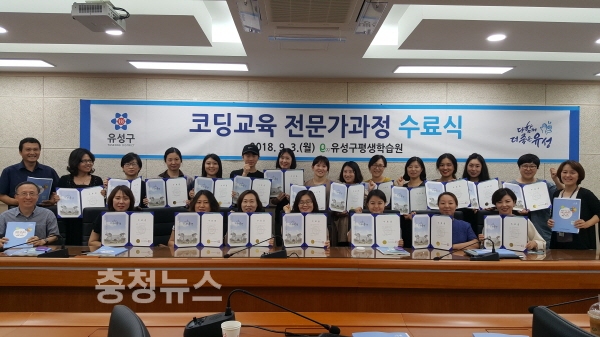 대전 유성구 평생학습원(원장 이하경)은 초‧중학교 코딩교육 의무화에 대비해 코딩교육 전문가 과정을 운영하고 3일 수료식을 가졌다.