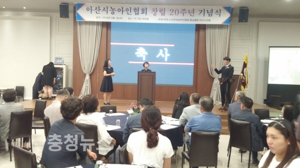 (사)한국농아인협회충남협회 아산시지회(지회장 김성완) 창립 20주년 기념행사가 지난 1일 더가든 라비체에서 열렸다.