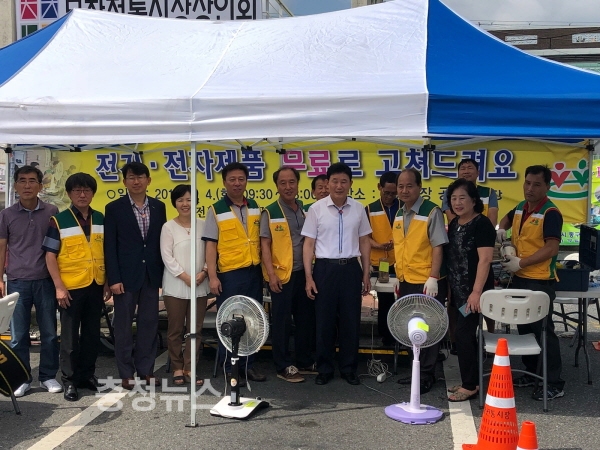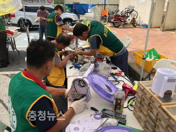 대전 중구(구청장 박용갑)는 4일 문창시장 공영주차장에서 전기전자제품 수리봉사팀(팀장 박용석) 회원 20여 명이 전기전자제품 무료수리 봉사활동을 실시했다.