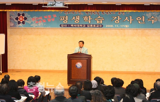 평생학습기관 강사 250명 대상 17일 오후 유성구 진동규 구청장은 평생학습강사들에게 전문적인 교수법 습득의 기회를 제공하기 위해 250여명의 지역내 평생학습기관 강사를 대상으로 2008년 평생학습강사 연수회를 개최했다. ▲ 진동규청장 평생학습 강사 연수 강의 이날 연수에서는 평생학습강사의 역할과 임무, 수업 전개 요령 등 평생학습강사의 역량강화를 위한 외래강사 초청 연수를 실시했다. 저작권자 © 충청뉴스 무단전재 및 재배포 금지 성재은 기자 다른기사 보기 기사가 마음에 드셨나요? 충청뉴스 좋은 기사 후원하기 1,000원 3,000원 5,000원 10,000원 30,000원 50,000원 직접입력 비회원 약관동의하기 ※ 소중한 후원금은 더 좋은 기사를 만드는데 쓰겠습니다.